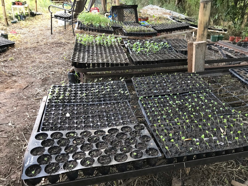 Dependiendo del cultivo es el tiempo que dejarías las plántulas en la bandeja. Aquí uno debe ejercitar su vista y poderes predictivos para poder interpretar las hojas y saber si las plantas aún están cómodas en ese espacio. Si las plantas llevan mucho tiempo y el crecimiento de las raíces es demasiado para su contenedor, va a causar daños radiculares (de raíz) en la etapa de trasplante cuando se estén sacando. Algunos cultivos también tienden a florecer prematuramente por el estrés de estar más tiempo de lo que deben en semillero. Un ejemplo de esto son los tomates y pimientos que, si se pasaron de tiempo, a la semana o dos de ser sembrados puede que tengan sus primeros brotes de flores. Estas se deberían remover para que así la planta no gaste sus recursos en la florecida y se enfoque en su crecimiento vegetativo.
